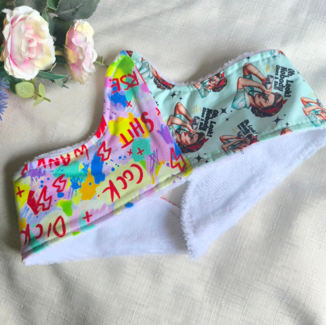 Zero Waste sweat catchers are made with patchwork fabrics to help keep us as zero waste as possible.